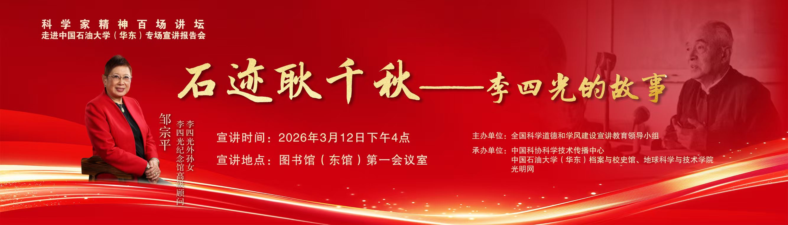 科学家精神百场讲坛走进石大——李四光先生外孙女邹宗平讲述李四光的报国人生