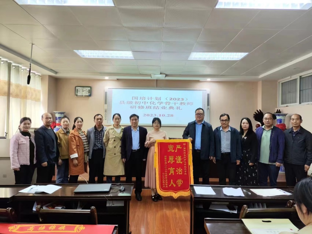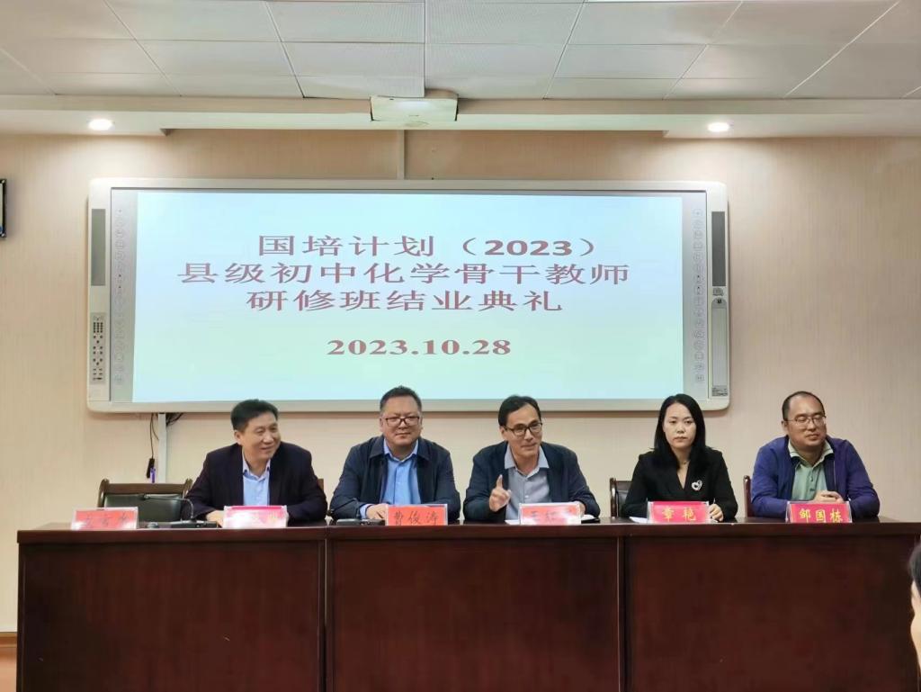10月28日上午,“国培计划(2023)”县级初中化学骨干教师研修班结业典礼在化学楼407会议室举行。学院副院长曹俊涛、王红军、项目负责人沈久明老师及研修班班主任出席结业典礼。结业典礼由王红军主持。