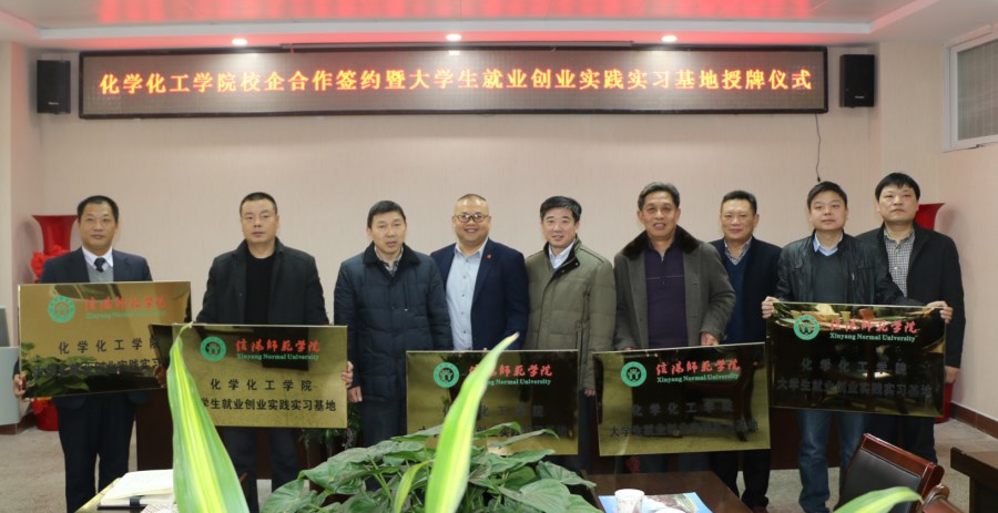 12月12日,Beat365唯一官方网站与信阳科美新型材料有限公司、信阳怡和矿产资源开发有限公司、信阳恒源矿业有限公司、河南甾体生物科技有限公司、信阳材料制造四通机械有限公司等多家企业举行了校企合作签约暨就业创业实践实习基地授牌仪式。信阳师范学院副校长王文臣、招生就业处处长兼就业创业指导中心主任江玉安出席仪式并授牌颁证。Beat365唯一官方网站党政领导和师生代表见证了仪式。仪式学院党委书记郭鹏主持。