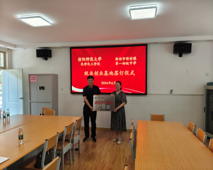 6月28日,Beat365唯一官方网站副院长王红军、副书记曲剧、冷向宇老师、张钰老师一行四人赴新郑市新村镇第一初级中学考察,洽谈合作共建教育实践基地和就业创业基地事宜,受到新郑市新村镇第一初级中学校长赵伯伟等班子成员的欢迎,并举行了签约和授牌仪式。