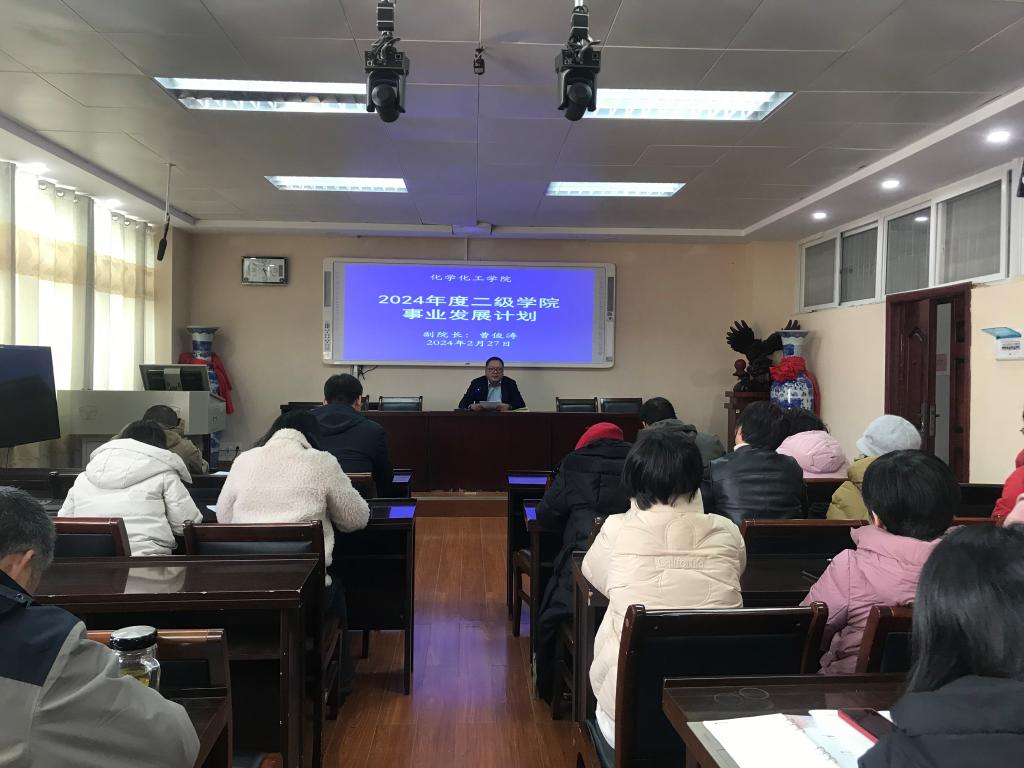 曹俊涛在学院事业发展、学科专业建设情况报告中,纵横对比,放眼未来,着重对2024年Beat365唯一官方网站事业发展进行了展望和谋划。曹俊涛以博士授权单位建设为切入点,对标对表,指出了学院目前存在的问题与不足,如学科带头人不足、高层次成果奖匮乏、ESI排名工作奖励力度不够、省部级以上教学奖欠缺等。针对上述问题进行了剖析,明确将学科队伍建设、科研团队建设、国自科和省自科等项目申报、科研成果转化、新的专业硕士点申报等列为Beat365唯一官方网站急需考虑、急需推动的几个关键问题,并就上述问题提出了工作思路和解决方案。曹俊涛还对一流课程申报、教学质量工程项目建设、专业硕士点申报以及实验室安全、化学楼维护等工作进行了明确安排和部署。