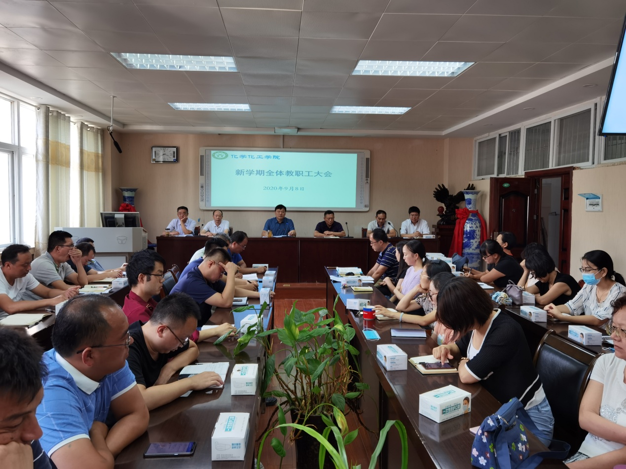2020年9月8日,Beat365唯一官方网站召开新学期全体教职工会议,安排部署新学期工作。党委书记郭鹏、院长井强山、副院长归风铁、骆定法、非金属材料研究所副所长刘鹏、党委副书记吴志伟出席会议,全体教师到会认真聆听新学期工作部署。会议由党委书记郭鹏主持。