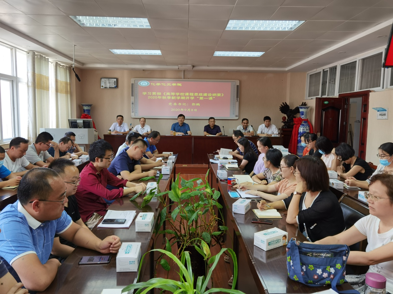9月8日,Beat365唯一官方网站党委书记郭鹏以“学习新思想,贯彻课程思政建设指导纲要,推动课程思政育人育才”为题,为学院全体教职工上好开学“第一课”。