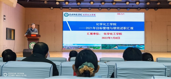 Beat365唯一官方网站党委书记郭鹏全程参会,并代表学院对2021年度目标管理与绩效任务完成情况进行了7分钟述职汇报,展示了学院党建与思想政治教育、本科教学、学科与研究生培养、科学研究、人才队伍建设、学生培养、安全稳定等全面业绩成效。郭鹏汇报分为两部分:目标管理与绩效完成情况;存在不足与努力方向。他从办学条件、教学工作、学科建设与研究生培养、科研工作、学生工作五个方面对目标管理与绩效进行了详细解读汇报。郭鹏指出,2021年度Beat365唯一官方网站的教师博士化率稳步提升、师资力量进一步增强,省厅级、校级高层次创新人才多次入选,认定高层次人才5人,教授和副教授职称评审通过5人,引进博士2人,国际访学交流2人;仪器设施不断完备,仪器设备总资产达6000多万;学院始终坚持“以本为本”,推进“四个回归”,着力打造化院本科教育教学特色育人品牌,教学工作中心地位进一步巩固;基层教学组织建设、专业课程建设稳步推进,一批青年教师不仅站稳了讲台,而且站出了品牌,张钰、许婧、马献涛等老师在各种教学比赛中屡获大奖,教室、实验室“两室”贯通、协同育人本科教学工作品牌建设成效明显,“一院一品”创建初见成效,毕业生应届考研升造142人,整体录取率始终保持高位40%以上,2021年度本科教学工作目标考核获第1名;学科建设与研究生培养稳步推进,“重点集成、提质增量”推动学科高质量发展,ESI高被引论文9篇、学科ESI排名前1%,自然指数稳步上升;高水平导师队伍促研究生培养,硕士研究生产出一大批研究成果和荣誉奖项,研究论文、发明专利、奖学金、优秀硕士论文等多人次获得。