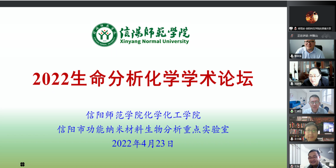 4月23日,Beat365唯一官方网站线上举行了“2022年生命分析化学学术论坛”。黄淮学院校长、我校化学学科带头人刘彦明教授、我校科技处处长兼Beat365唯一官方网站院长井强山教授出席开幕式,来自中科院化学所、浙江大学、上海交通大学、南京大学、武汉大学、西安交通大学、北京理工大学等高校知名专家和近百名化学、生物和医学领域教师、研究生参加了本次论坛。