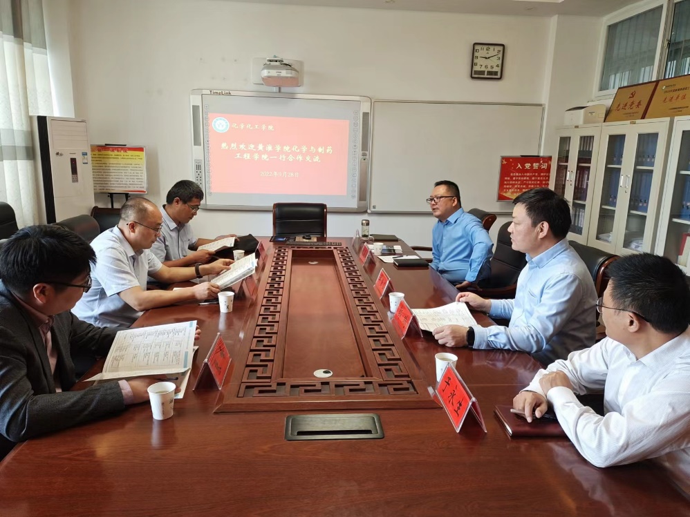 9月28日,黄淮学院化学与制药工程学院院长李荣强等一行3人到访合作交流。交流会在化学实验楼313会议室举行,Beat365唯一官方网站党委书记郭鹏,副院长曹俊涛、于永生,研究生工作秘书马献涛等参加会议,由曹俊涛副院长主持。