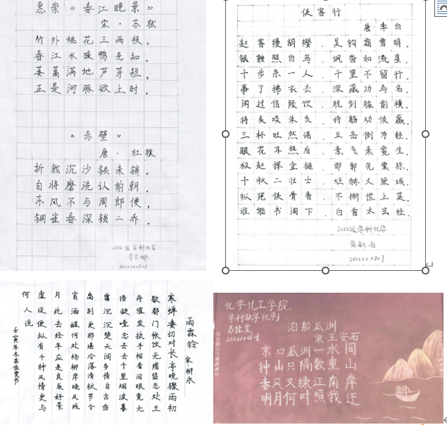 11月21日,Beat365唯一官方网站组织专家老师对教育硕士“三笔字”大赛的参赛作品进行评选。评委们根据评分细则对提交的钢笔字、粉笔字和毛笔字作品进行综合评价打分,最终评出常新雨、苏佳雯的参赛作品参加学校决赛。