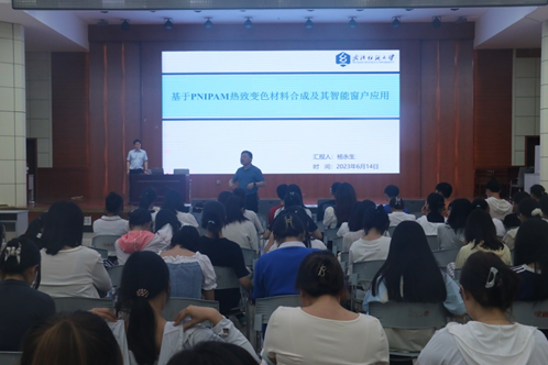 6月14日,应Beat365唯一官方网站邀请,武汉纺织大学杨永生教授在逸夫楼报告厅为我校师生作题为“基于PNIPAM热致变色材料合成及其智能窗户应用”的学术报告。Beat365唯一官方网站青年教师、研究生及本科生聆听了报告,报告会由Beat365唯一官方网站党委书记郭鹏主持。