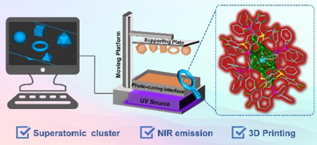 近日,Beat365马小红博士在近红外发光超原子团簇研究领域取得了新进展,相关成果以“Near-infrared luminescence AgPd alloy superatomic clusters”为题,在《Inorganic Chemistry Frontiers》上发表。这项研究开展了一种合金化策略制备新型双金属纳米团簇,[Ag14Pd(PFBT)6(TPP)8](TPP)(缩写为Ag14Pd;TPP:三苯基膦;PFB:五氟苯硫酚)。通过单晶X射线衍射、电喷雾电离质谱、热重分析和X射线光电子能谱等手段对Ag12Pd的晶体结构进行了表征。Ag14Pd具有标准的二十面体Ag12Pd金属内核,在二十面体相对的两端被两个Ag(PFBT)3封端,形成具有1S21P6特征的闭壳层超原子结构。值得注意的是,该团簇在溶液和固体状态下均表现出强的近红外发光,在固态下的量子产率高达15%,这在金属纳米簇中是罕见的。结合密度泛函理论计算对Ag14Pd的光学性质和电子结构进行了全面研究。此外,由于其强的发光和优异的光稳定性,Ag14Pd簇显示出作为近红外油墨用于不同模型的3D打印的巨大潜力。本工作拓展了近红外发光超原子团簇的应用范围,为团簇的应用提供了新的方向。