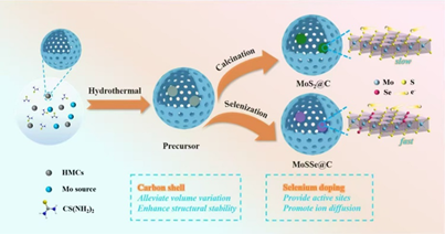 近日,Beat365张星博士课题组在ACS Applied Materials & Interfaces发表题为“Dual Regulation of Anion-Vacancy Modified MoSSe Nanosheets in Mesoporous Carbon Nanospheres for High Performance Sodium Storage”的研究性论文(DOI:10.1021acsami.4c19481)。张星博士为通讯兼第一作者,研究生吕蓓、郭梦瑶分别为第二、第三作者,信阳师范大学为第一通讯单位。