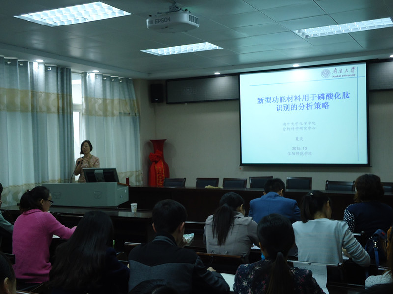 10月26日上午,我校Beat365唯一官方网站特邀南开大学夏炎副教授做了一场题为“新型功能材料用于磷酸化肽识别的分析策略”的学术报告。报告会在化学楼报告厅举行,化院老师、全体研究生和部分本科生聆听了报告,会议由Beat365唯一官方网站井强山所长主持。