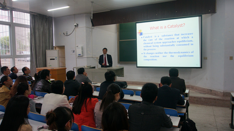 报告中,王金安教授首先对墨西哥理工学院进行了介绍,随后从催化剂、催化历史、催化剂应用等方面进行了详细介绍,并对其目前的部分科研情况进行了介绍。最后,在互动环节,王金安教授详细地回答了师生们的提问。