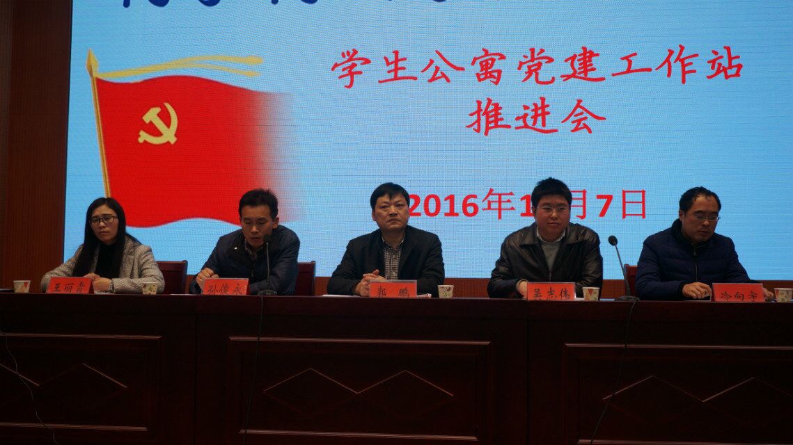 12月7日,在逸夫楼报告厅,Beat365唯一官方网站召开学生公寓党建工作站推进会。Beat365唯一官方网站党委书记郭鹏、党委副书记吴志伟、团委书记冷向宇、团委老师王丽霞主席台就坐。Beat365唯一官方网站学生党员和学生干部200余人参加会议,会议由党委秘书孙俊永主持。