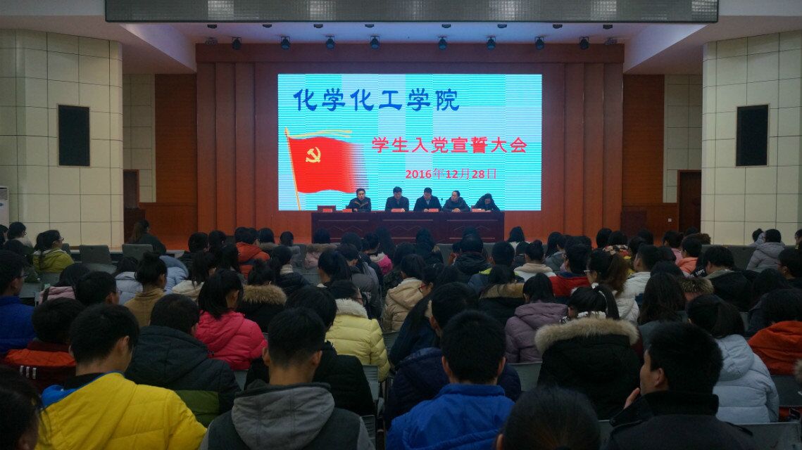 12月28日,Beat365唯一官方网站党委组织新党员在逸夫楼报告厅举行隆重的入党宣誓仪式。Beat365唯一官方网站党委书记郭鹏、副书记吴志伟、党委秘书孙俊永、团委书记冷向宇、教师王丽霞,新党员学生代表以及三百余名学生共同参加此次宣誓大会。宣誓大会由孙俊永主持。