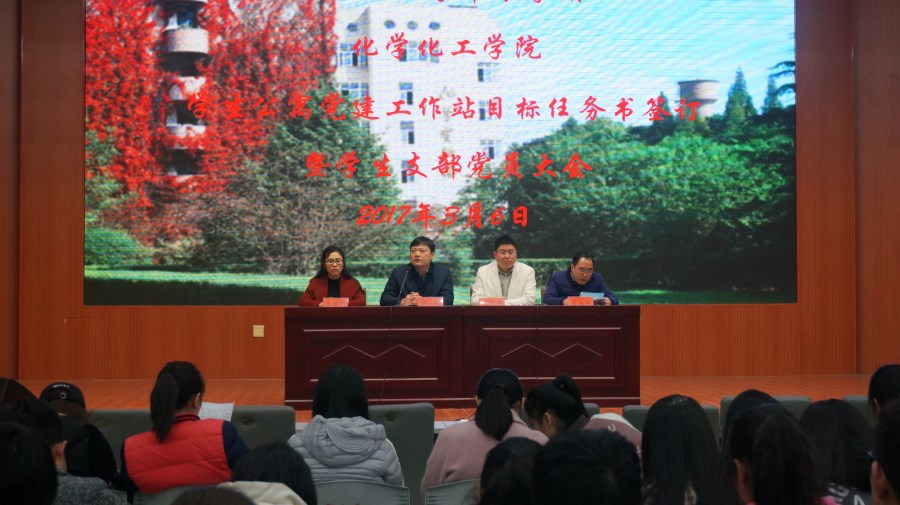 会上,各学生党支部书记、副书记、支部委员、学生公寓党建工作站、社团党小组负责人到会签订了2016-2017学年下学期党支部、公寓党建责任区、党小组的目标任务书。Beat365唯一官方网站党委副书记吴志伟,就近期的学生党务工作、学生公寓党建工作情况作全面部署,明确了下一步工作计划和安排。他要求全体学生党员要充分发挥先锋模范作用,根据具体工作任务安排,制定切实可行时间进度表,科学合理安排工作,切实把学生公寓党建工作落到实处。郭鹏发表讲话,他集中宣讲了中共十八届六中全会精神,要求学生党支部、公寓党建工作站、党小组继续坚持深入开展“两学一做”学习教育活动,明确要求全体学生党员要认真学习《新形势下关于党内政治生活若干准则》和《中国共产党党内监督条例》。他就学生公寓党建工作站有关事项作出了重申和具体要求。他指出,Beat365唯一官方网站学生公寓党建工作站项目于2009年启动,2010年首批获“河南省高校思想政治工作优秀奖”。多年来,学生公寓党建工作站的育人作用得到充分发挥,Beat365唯一官方网站年年多次荣获“先进基层党组织”、”精神文明建设单位“,学团工作也多次“学生工作先进单位"、”就业创业先进单位“、”寝教室管理先进学院“、"校园环境建设先进学院"、“团学工作目标管理先进单位”等一系列集体荣誉表彰。每年都有一大批优秀学子荣获各级各类奖项。每届毕业生考取研究生比例占比都很高,一大批优秀毕业生被录取到重点高校继续升造,人才培养质量得到社会普遍赞誉。其中,党员学生占各类竞赛、比赛、评优评先评奖的85%以上,学生党支部的战斗堡垒作用和党员的先锋模范作用得到充分发挥和体现。他要求全体党员同学:一是要以对党负责的态度,做好党支部、党员的民主评议;二是要求各党支部严格党员发展程序,做好入党积极分子的教育、培养、考察;三是按照学生公寓党建工作站项目的具体要求,做好学生走访联系和检查督察服务工作的上报工作,要及时上报学生学习生活心理安全及思想动态情况;四是要求每位学生党员要努力践行社会主义核心价值观,切实发挥党员先锋模范和引领示范作用。 最后,学生党员在现场填写了《党员互评民主评议表》和《党支部班子民主评议表》,发放了《信阳师范学院民主评议党员登记表》,签订了新学期《Beat365唯一官方网站党建工作站目标任务书》。(Beat365唯一官方网站供稿)