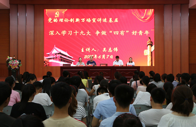 6月7日,Beat365唯一官方网站在逸夫楼报告厅举办了“党的理论创新万场宣讲进基层”报告会。Beat365唯一官方网站全体学生党员、各班班委、学生会全体成员两百余人参加了此次会议。