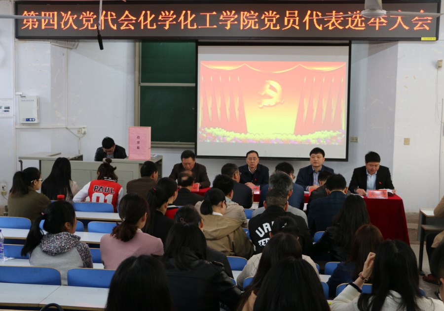 4月15日,Beat365唯一官方网站出席信阳师范学院第四次党代会代表选举党员大会在教四楼T1教室举行。信阳师范学院副校长刘彦明、Beat365唯一官方网站党委书记郭鹏,党委委员、院长井强山、副书记吴志伟,兼职副书记、副院长骆定法,党委委员、副院长归风铁,党委委员、非金属材料研究所副所长刘鹏,党委委员黄克靖以及全体师生党员参加了会议。会议由郭鹏主持。