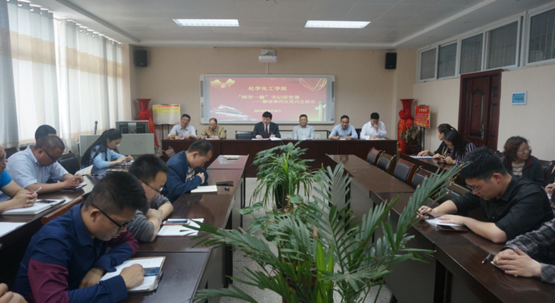 5月8日,Beat365唯一官方网站在化学实验楼407会议室召开会议,学习宣传贯彻我校第四次党代会精神,学院全体领导班子成员、教职工参加了会议。党委书记郭鹏同志带领师生认真学习了宋争辉同志代表中共信阳师范学院第三届委员会作的题为《践行新思想 实现新作为 全力谱写高水平师范大学建设新篇章》的工作报告。