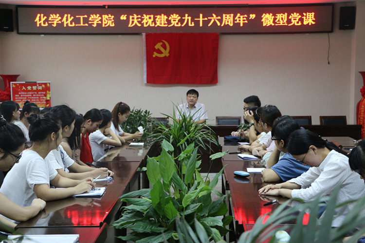 6月28日,在纪念建党九十六周年之际,Beat365唯一官方网站党委书记郭鹏以“社会主义核心价值观的科学内涵”为题,在化学楼407会议室为三十余名新发展学生党员做报告,报告由党委秘书冷向宇主持。