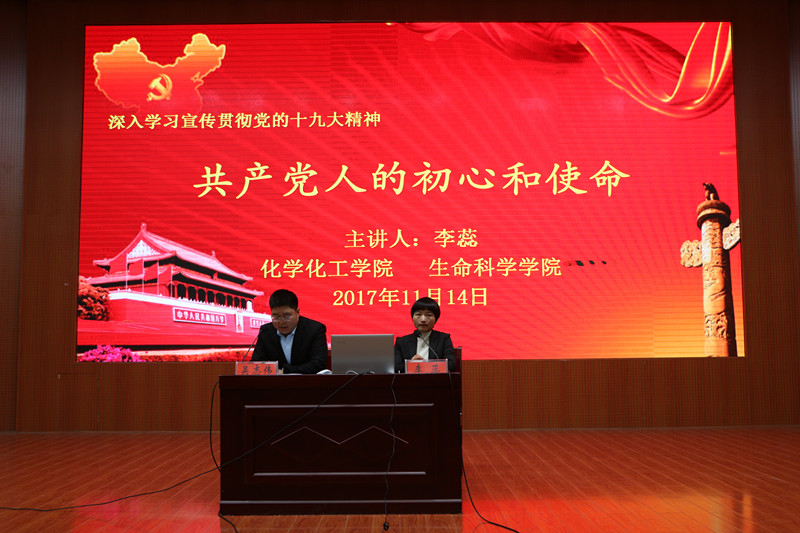 为深入学习宣传贯彻党的十九大精神,11月14日,德育讲师团李蕊副教授在逸夫楼报告厅与青年学生座谈“共产党的初心与使命”。学生处副处长陈铭,Beat365唯一官方网站党委副书记吴志伟莅临现场,与来自生命科学学院、Beat365唯一官方网站的五百余名学生代表参加了报告会。会议由吴志伟主持。