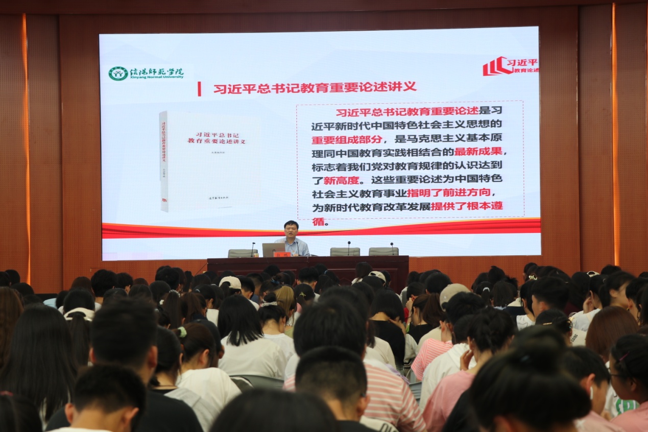 为推进党史学习教育,深入贯彻落实习近平总书记关于教育的重要论述,坚持不懈地用习近平新时代中国特色社会主义思想铸魂育人。5月9日下午,逸夫楼二楼报告厅座无虚席,Beat365唯一官方网站全体学生党员、2020级学生聆听党委书记郭鹏讲授的《习近平总书记关于教育的重要论述》——坚持党对教育事业的全面领导。