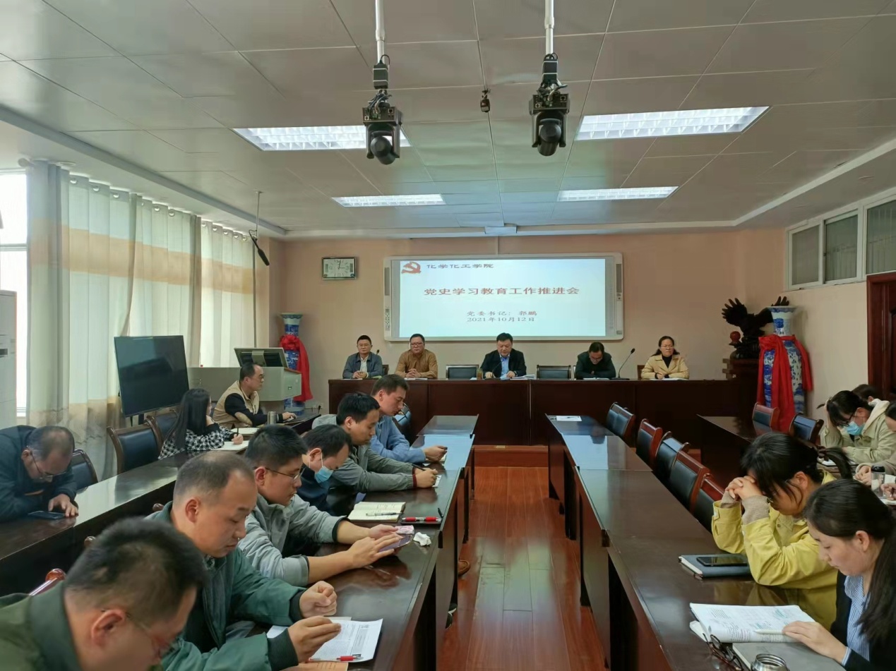 10月12日下午,Beat365在化学实验楼407会议室召开党史学习教育工作专题推进会,分党委委员、专职组织员、各支部书记参加会议。会议由院党委书记郭鹏主持。