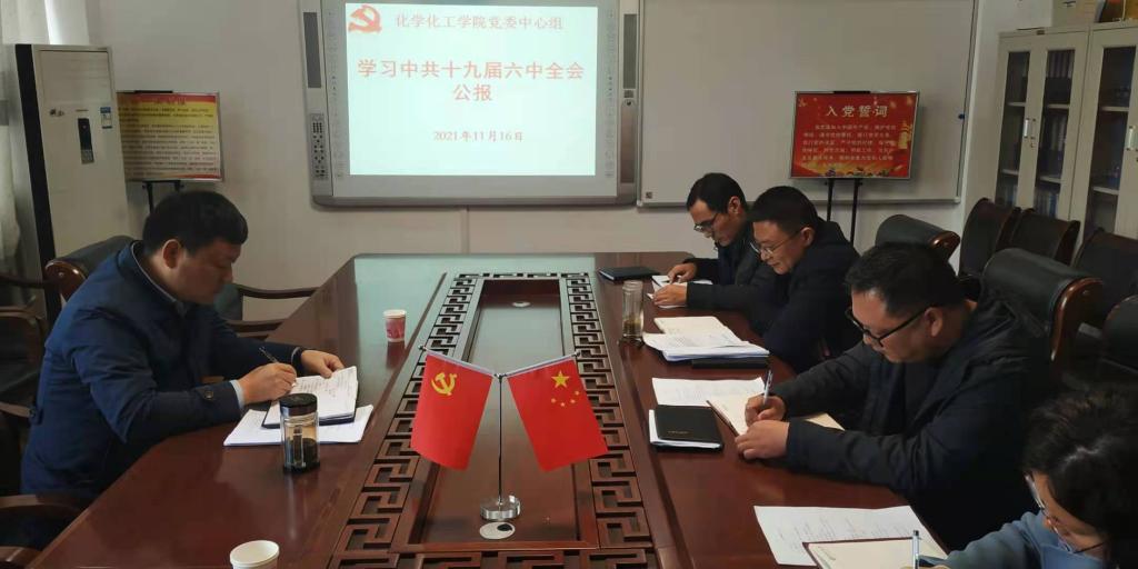 11月16日上午,Beat365唯一官方网站党委理论学习中心组在实验楼313“党员之家”召开专题学习会,集中学习《中国共产党第十九届中央委员会第六次全体会议公报》、《中共中央关于党的百年奋斗重大成就和历史经验的决议》精神。学院党委书记郭鹏主持会议。中心组全体成员参加学习会。