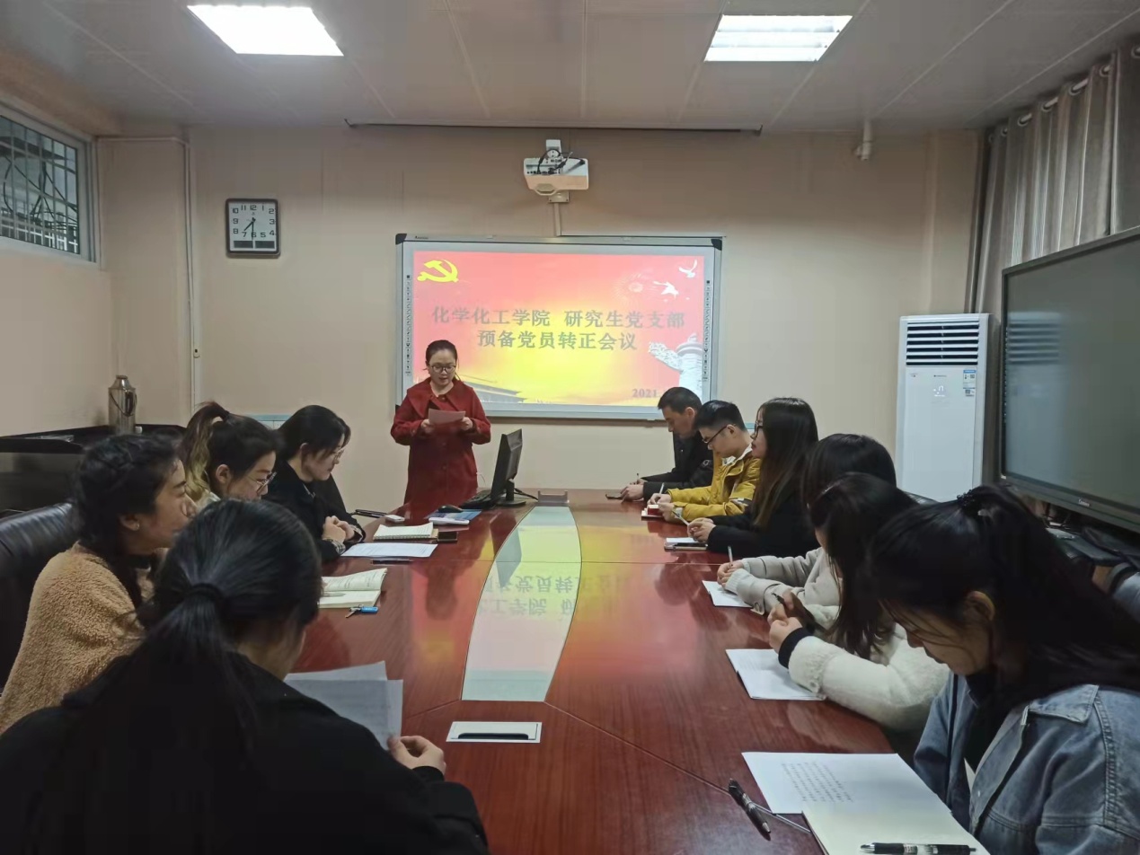 为巩固党员队伍质量,严格履行党章规定的预备党员转正手续,2021年11月30日,Beat365唯一官方网站研究生支部在实验楼407室召开预备党员转正大会,研究生支部6名正式党员和5名预备党员参加本次大会,其中有2名预备党员转为正式党员。