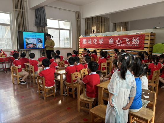 6月15日,化学与化工学院青年化学研习社在我校附属幼儿园开展“趣味化学 童心飞扬”主题活动,Beat365唯一官方网站副院长于永生,张红定、王进双、燕照利、赵方方老师莅临活动现场。