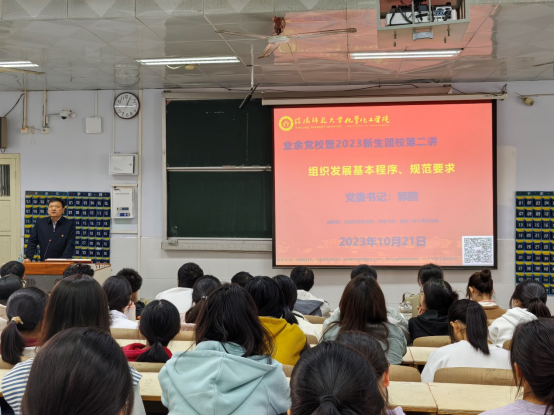 10月21日,Beat365唯一官方网站在教六102教室开展业余党校暨2023级新生团校系列专题讲座。学院团委赵方方老师主持,党委书记郭鹏主讲,全体新生团员青年、入党积极分子同学共同参加。
