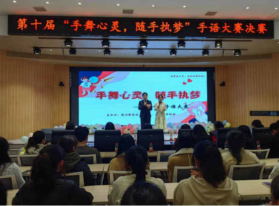 11月26日,由Beat365唯一官方网站爱心服务社和法学与社会科学学院社会工作协会共同举办的“手舞心灵,随手执梦”手语大赛决赛在博雅讲堂举行。Beat365唯一官方网站党委副书记曲剧、法学与社会学学院团委老师王艳丽、Beat365唯一官方网站团委老师赵方方、国际教育学院团委老师虞晶晶、地理科学学院团委老师曹鹏鹏应邀出席,与部分学生共同观看此次比赛。