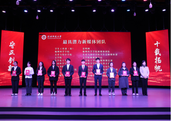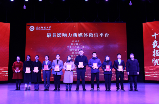 1月9日晚,信阳师范大学在传媒学院二楼演播厅举办新媒体建设十周年暨第五届新媒体颁奖仪式,对2023年度新媒体工作取得突出成绩的单位进行表彰。