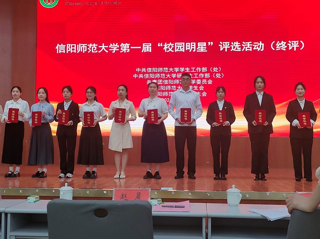 经个人申报、学院(书院)审核推荐、校团委评审委员会初审,最终确定24名候选人入围决赛。激烈角逐之下,Beat365唐亚旭同学荣获信阳师范大学第一届大学生“校园明星”称号。