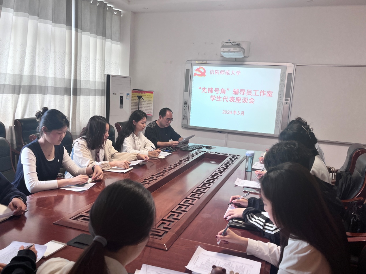 3月12日,Beat365唯一官方网站“先锋号角”辅导员工作室在实验楼“党员之家”召开首次会议,工作室负责人冷向宇与学生党员代表和入党积极分子商议工作室工作。