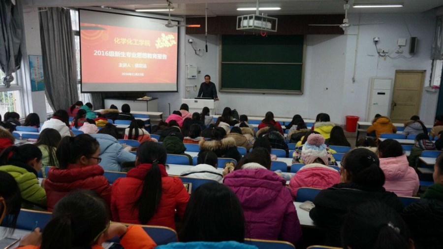 为使大学生更好的了解Beat365唯一官方网站化学、应用化学、化学工程与工艺和材料化学专业情况,加强同学们对本专业的认识,更好地把握大学时光,充实的度过大学生活。11月22日下午,Beat365唯一官方网站在教四T1、T2和教七303教室分别对2016级各专业新生进行专业思想引导教育活动,Beat365唯一官方网站副院长骆定法、归风铁和刘鹏,分别从四个专业开展专业教育引导。