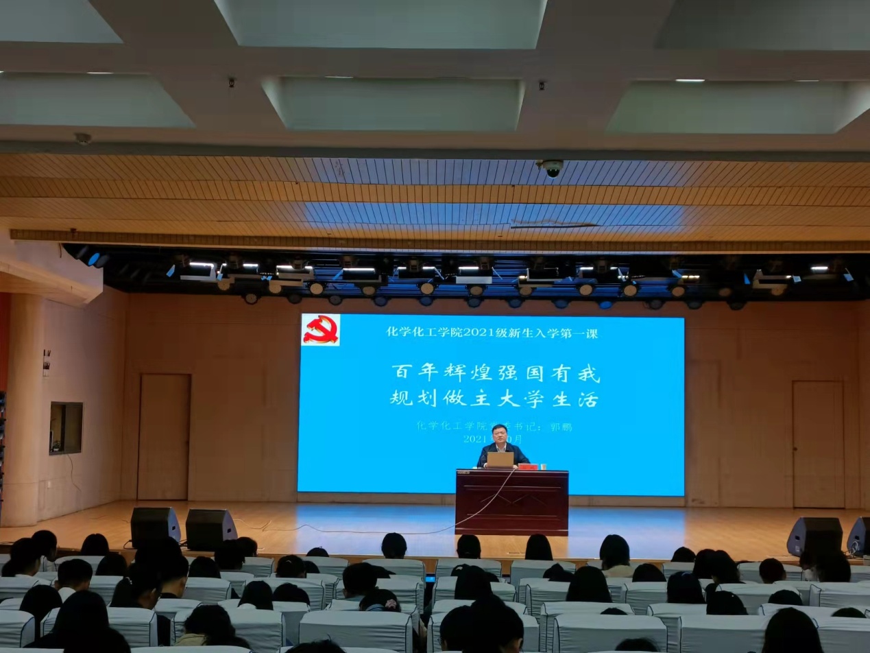郭鹏以7月1日习近平在纪念中国共产党成立100周年大会的重要讲话引入,从中国共产党的产生发展、改革开放的伟大实践和新时代的新征程、中国共产党百年发展的成功经验与启示等方面重点讲解,集中阐述了党的百年历程。郭鹏通过对共产党初期的艰难抗争到中国共产党领导社会主义革命建设的介绍,使同学们加深了对党史的了解,他希望同学们做到知史爱党、知史爱国;通过讲解新中国在党的领导下取得的伟大成就,要求大家将党史学习总结好、传承好、发扬好,将社会主义核心价值观融入在校学习生活日常行为习惯,展现新时代大学生的良好风貌。他介绍,习近平总书记9月1号在中央党校秋季青年干部培训班开班仪式上作了重要讲话,再次强调,青年是国家的未来和希望,中国共产党成立100周年之际,“十四五”胜利开局,“两个一百年”征程历史交汇,新时代大学生正身处在难得的历史机遇中,在全球深刻变革大背景下,青年人肩上的责任尤为重大。郭鹏勉励化学化工青年学子要进一步坚定道路自信、理论自信、制度自信、文化自信,增强做中国人的志气、骨气、底气,树立为祖国为人民永久奋斗、赤诚奉献的坚定理想。不负时代、不负韶华、不负人生,为实现中华民族伟大复兴添砖加瓦、不懈奋斗。
