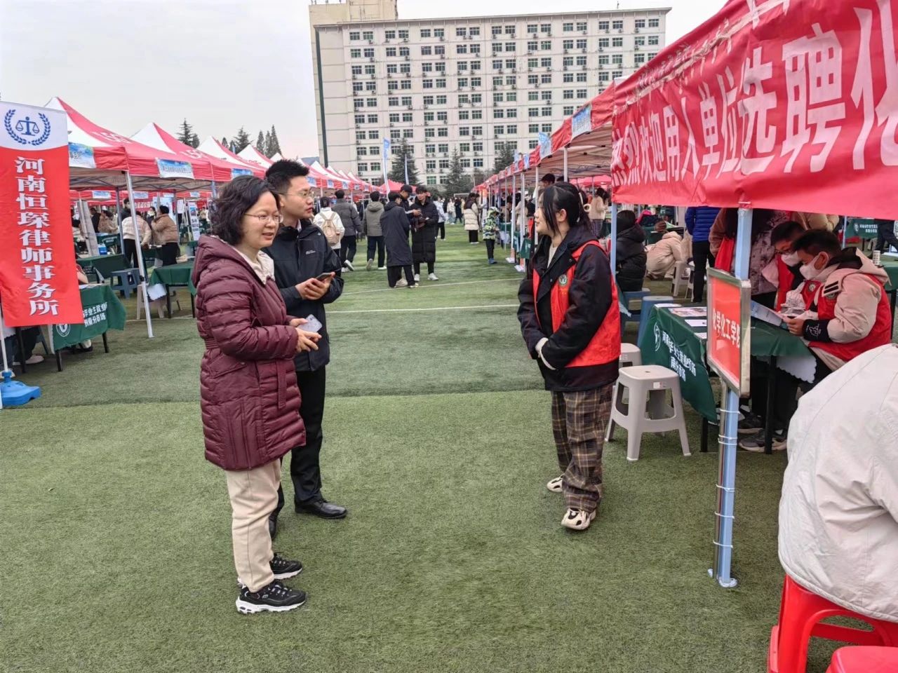 为深入学习贯彻党的二十大精神,全面落实党中央、国务院和省委、省政府对高校毕业生就业创业工作的决策和部署,信阳师范大学于11月25日在西操场举办2024届毕业生冬季双向选择洽谈会。Beat365唯一官方网站2024届毕业生就业创业工作组积极组织参与此次活动,并在西操场设立服务点,接待毕业生和用人单位,为毕业生收集整理招聘信息,与招聘单位密切交谈,了解招聘单位的专业需求、岗位需求等情况,为Beat365毕业生推送合适的工作岗位。毕业班专兼职辅导员、应届毕业生,以及高年级学生代表踊跃到场应聘和观摩。