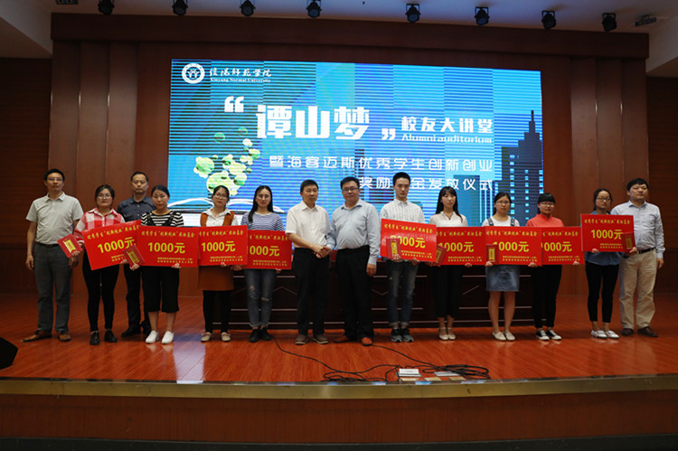6月6日下午,海客迈斯生物科技有限公司(上海)优秀学生创新创业奖励基金发放仪式在逸夫楼报告厅隆重举行,信阳师范学院副校长校长王文臣与海客迈斯生物科技有限公司(上海)总经理邹亮忠出席了发放仪式。招就处、学生处、校友办、Beat365唯一官方网站等相关单位的负责同志参加了仪式。仪式由校友办主任耿劲松主持。