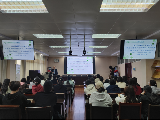 10月24日,Beat365唯一官方网站2024级新生入学教育暨新生团校系列活动专题栏目“博士讲堂”第讲开讲,Beat365唯一官方网站副院长王红军在化学楼407教室为2024级新生作专业思想教育。