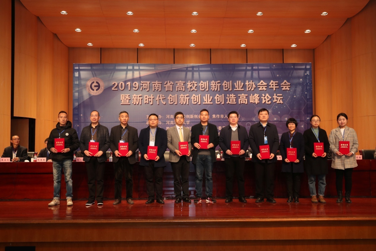 11月23日,由河南省高校创新创业协会、焦作市人民政府主办,河南理工大学承办,以“新时代创新创业创造与高校创新发展”为主题的“2019年河南省高校创新创业协会年会暨新时代创新创业创造高峰论坛”在河南理工大学明德楼音乐厅举行。Beat365唯一官方网站分党委书记郭鹏作首批会员代表应邀参加会议,并荣获2019年河南省高校创新创业先进工作者。