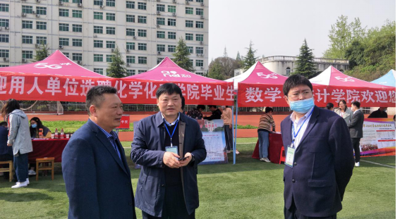 党史学习教育活动中,围绕“学党史、悟思想、办实事、开新局”,针对为师生办实事、办好事、解难事这一关键,积极服务毕业生就业创业,4月10日,由河南省教育厅主办、信阳师范学院承办的“河南毕业生就业市场豫南分市场暨信阳师范学院2021届毕业生线下春季双选会”在学校西操场举行。Beat365唯一官方网站组织毕业生积极参加招聘会,学院党委书记郭鹏、院长井强山、党委副书记吴志伟、毕业班辅导员冷向宇、就业办秘书严赫等就业创业工作领导小组成员莅临招聘会现场,一线开展毕业生就业招聘指导、咨询、服务,并与用人单位以及参与招聘的校友代表进行沟通交流,切实为毕业生办好实事。