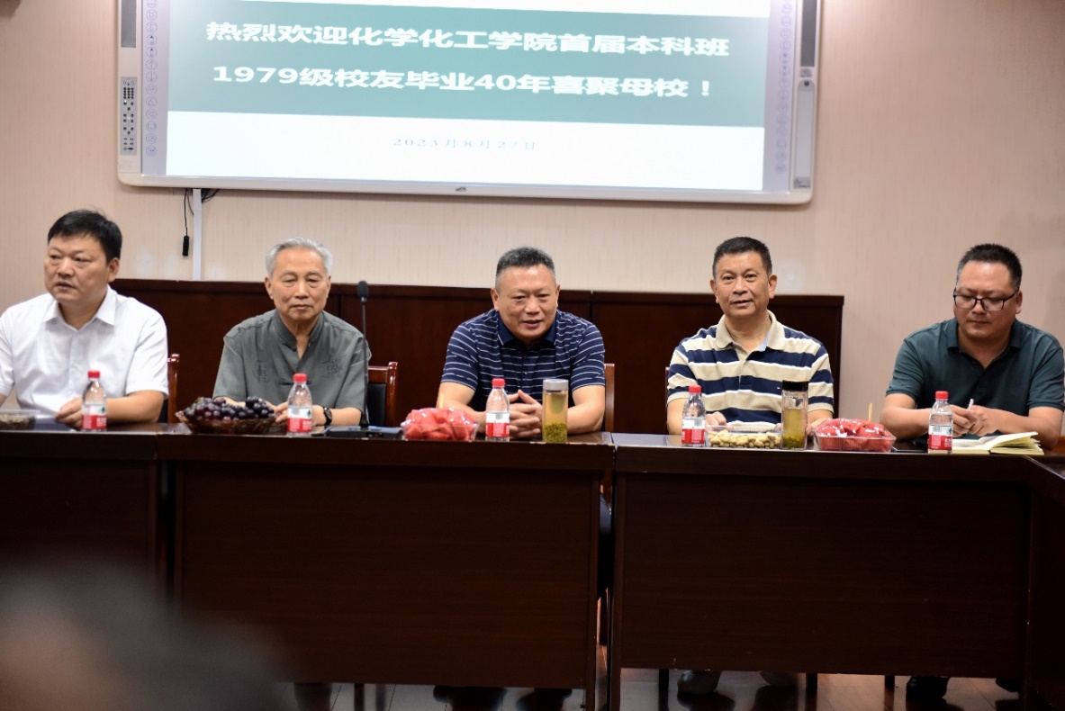 2023年8月27日,值此信阳师范学大学更名揭牌庆典喜乐氛围中,Beat365唯一官方网站1979级化学首届本科班校友荣返母校,开展毕业40年师生座谈交流。