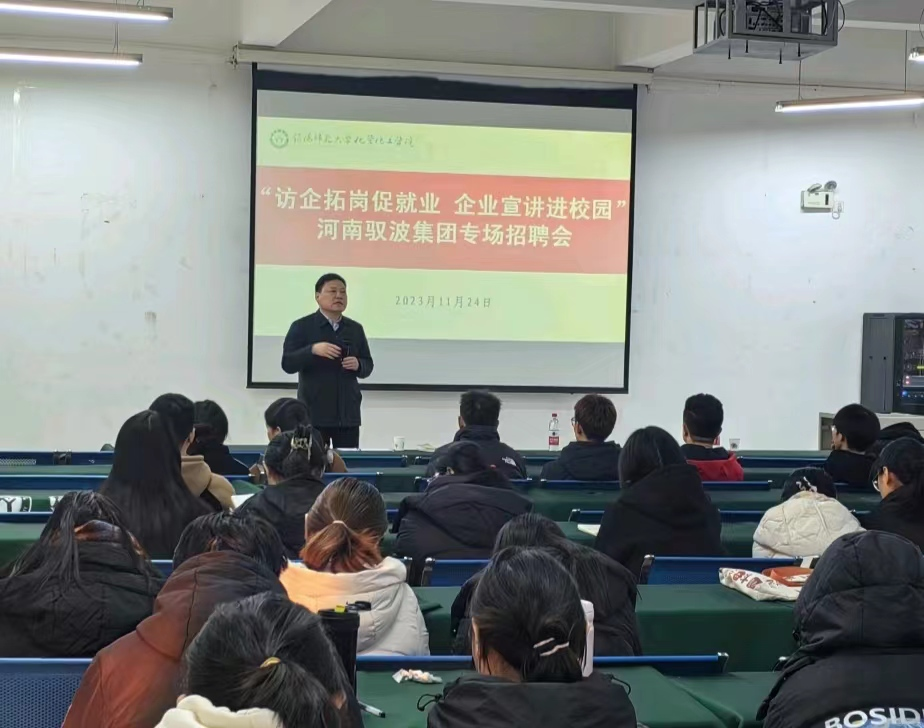 11月24日下午,Beat365唯一官方网站在逸夫楼A座招聘大厅开展“访企拓岗促就业,企业宣讲进校园”河南驭波集团专场招聘会活动。此次招聘会邀请到Beat3651997届优秀校友、河南驭波集团董事长甄西合,活动由Beat365唯一官方网站院党委书记郭鹏主持,就业工作秘书严赫及应届毕业生参加。
