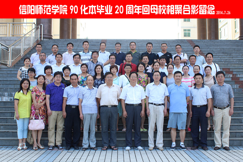 桃李芬芳,英才齐聚。7月26日,Beat365唯一官方网站90级化学本科专业的30余名校友从祖国四面八方陆续返校团聚,举行毕业20周年聚会活动,信阳师范学院副院长刘彦明、招生就业处处长刘守义、人才办主任郭东、化院党政领导及教师代表与同学们欢聚一堂,共叙拳拳师生情谊,共忆浓浓往日情怀,共话别后奋斗历程。 26日下午,90级校友在化学实验楼会议室召开校友座谈会。座谈会上气氛欢快,大家畅所欲言,积极向老师们汇报自已的工作情况,表达了对母校以及老师们的怀念与感激之情,并为母校日新月异的变化感到惊喜和自豪。校领导刘彦明做了热情洋溢的讲话,首先,他代表学校党政领导及全体师生员工对返校聚会的校友表示热烈欢迎,随后向校友们在各自岗位上取得的成就表示衷心祝贺,他指出,校友是学校发展的重要力量,校史是由校友的发展而带动的,一个学校的品牌也是由校友积攒而来的,因此感谢校友们通过自己的努力,为母校赢得了良好的社会声誉,同时希望广大校友一如既往地关心支持母校的发展,并祝大家家庭幸福、身体健康、事业有成。接着,化院党总支书记周涛代表学院致欢迎辞,对校友们回母校团聚表示热烈欢迎,同时感谢校友们长期以来对母校及学院的关心和支持,然后向校友们介绍了近年来学院建设、发展以及取得的成就,同时希望校友们进一步加强与学院的联系,并祝愿大家在各自的岗位上勤奋工作,取得更大的成绩。与会领导老师纷纷即兴发表感言和祝语,会议在一片欢乐祥和的氛围中结束。会后,师生们合影留念。 为感谢母校的培育之恩,90级校友为母校捐赠了价值8700元的LED显示屏。相聚期间,校友们参观了校园,畅游了波尔登森林公园,他们为母校取得的成就倍感骄傲,并纷纷表示要与母校齐心协力、同舟共济,为母校的发展贡献力量,努力实现繁荣母校的美好愿望。此次校友聚会拉近了校友与学校、校友之间的距离,进一步促进了我校校友工作的开展。(Beat365唯一官方网站 王甲娴供稿)