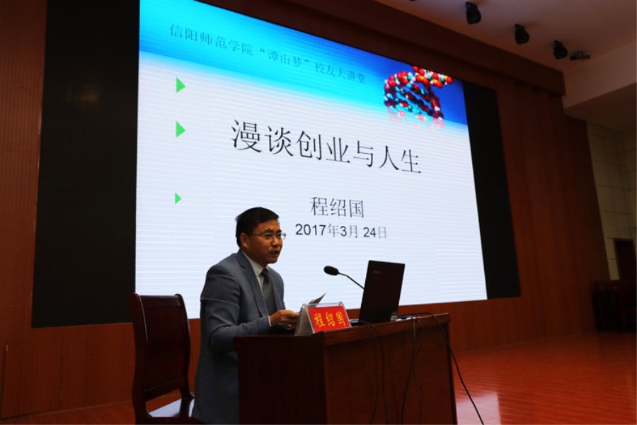 3月24日下午,“谭山梦”校友大讲堂第一讲在逸夫楼报告厅隆重举行。河南甾体生物科技有限公司董事长程绍国先生为在场师生作了主题为“漫谈创业与人生”的精彩创业报告。Beat365唯一官方网站党委副书记吴志伟,部分老师以及400余名学生到场学习。