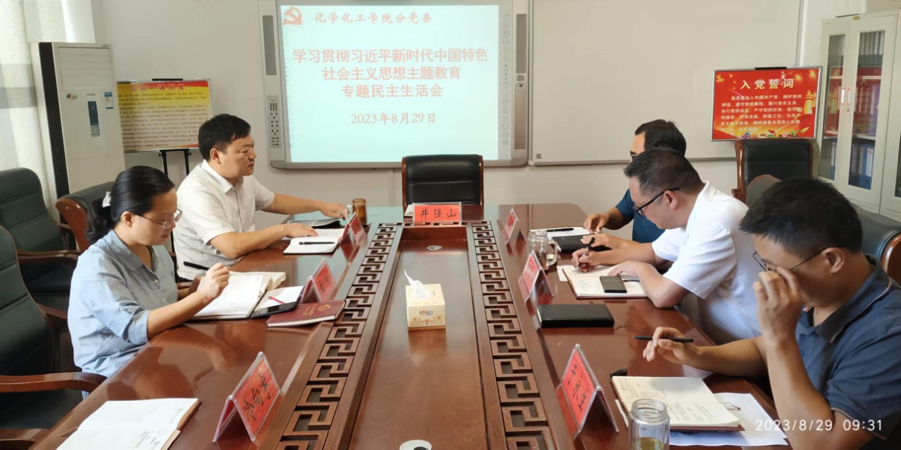 2023年8月29日,Beat365唯一官方网站党委在化学实验楼313“党员之家”召开学习贯彻习近平新时代中国特色社会主义思想主题教育专题民主生活会。Beat365唯一官方网站党委全体处级干部参加民主生活会,会议由学院党委书记郭鹏主持。