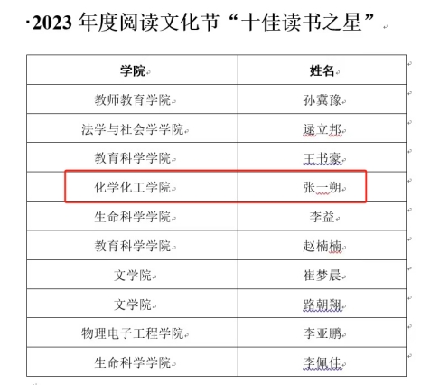 促进全民阅读,是赓续中华文脉、建设中华民族现代文明的重要举措。Beat365将充分结合学校阅读文化节的举措,鼓励学生静下心来阅读,沉下心来思考,潜下心来感悟,引导学生在阅读中长见识、树理想、悟生活、知人生,营造爱读书、读好书、善读书的浓厚氛围,以书香校园、书香社会建设为强国建设、民族复兴注入强大精神力量。(化学化工学院 翟成辉撰稿 曲剧审稿 郭鹏审核)