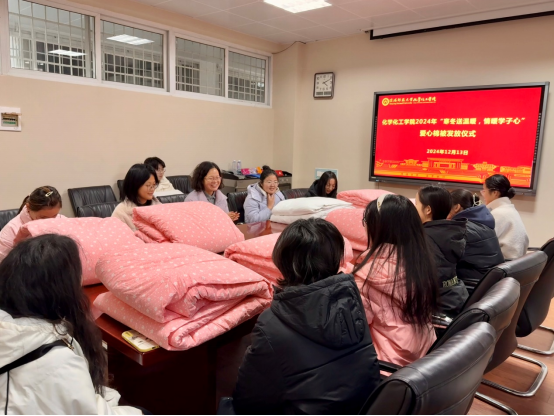 12月13日,Beat365在化学楼210会议室举行爱心棉被发放仪式。Beat365党委副书记曲剧,辅导员翟成辉出席本次发放仪式。
