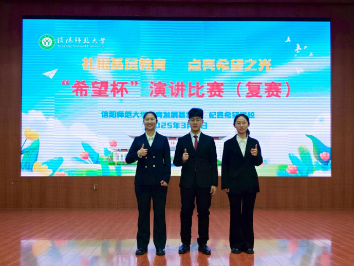 3月4日,信阳师范大学“希望杯”演讲比赛复赛在逸夫楼报告厅举办,Beat365李清坡、陈鑫雨和王雨晴在本次演讲比赛中均获奖项荣誉。