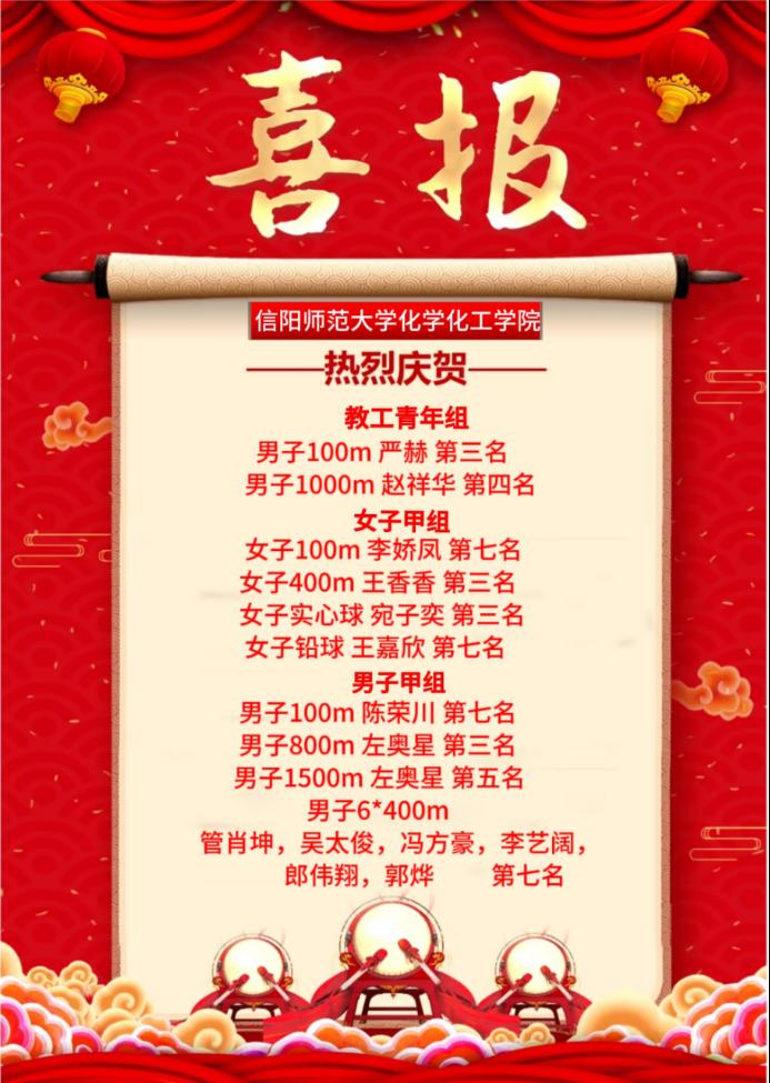 4月18日下午,信阳师范大学第二届春季运动会在西田径运动场胜利闭幕。学院党委书记吴志伟、副书记曲剧、辅导员冷向宇、严赫、翟成辉等出席本次运动会,全体运动员及学生代表积极参与。